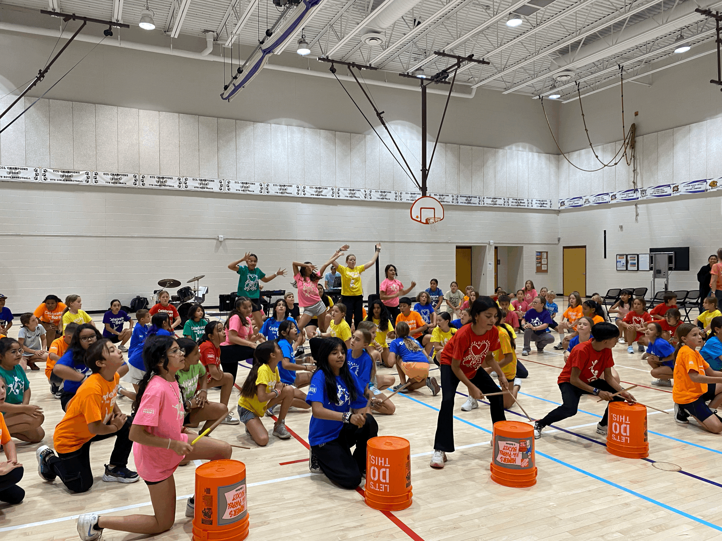 On Thursday, September 12, level five students at Tennyson Knolls Elementary (TKE) performed in front of a packed gym of students and parents. Celebrate the Beat (CTB) hires professional artist and musicians to come together and teach over 3,500 children annually thru choreographed dance.