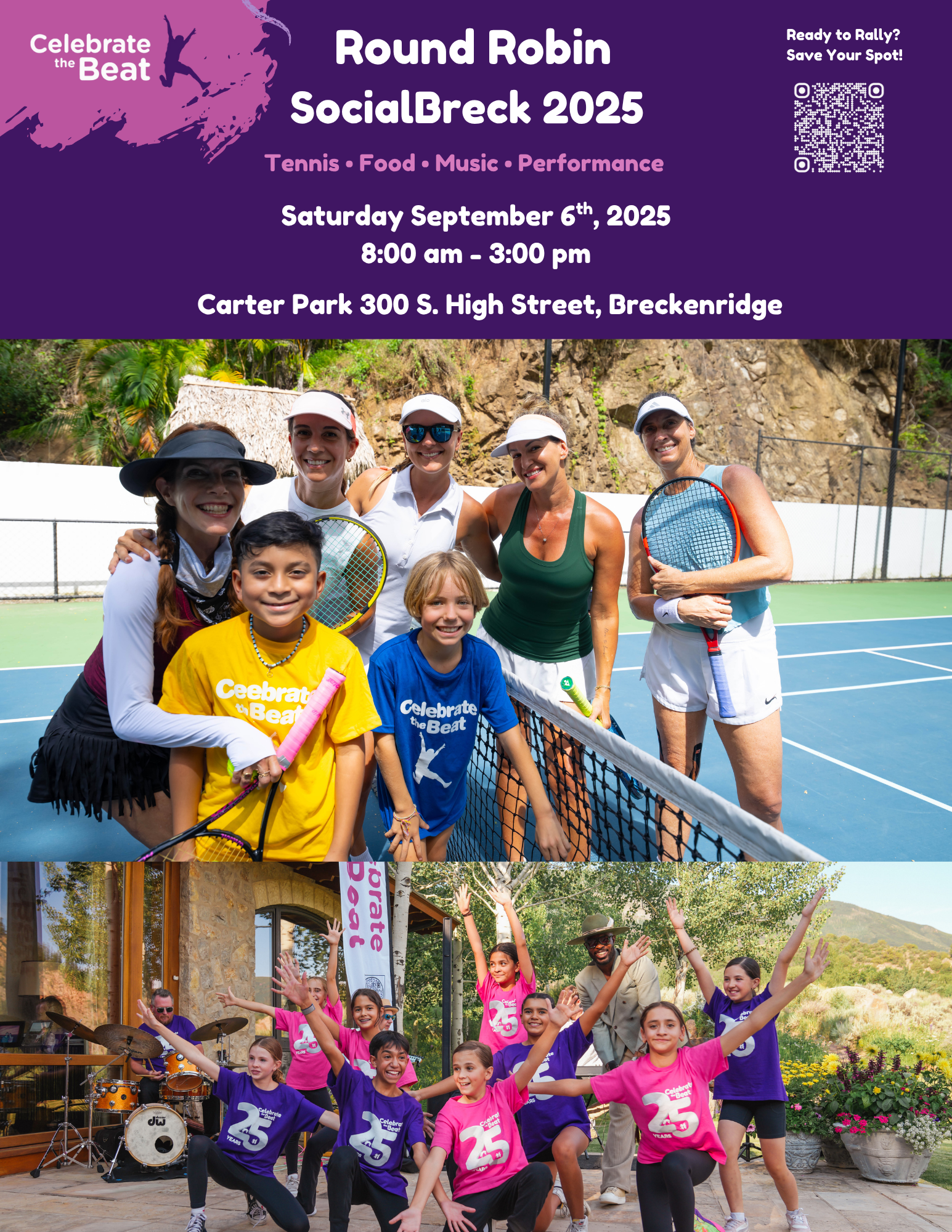 Grab your racket and join us for a fun-filled Round Robin Social in Breckenridge — all in support of Celebrate the Beat! Whether you’re playing or cheering from the sidelines, your participation helps bring the joy and power of dance to more children across Colorado.
